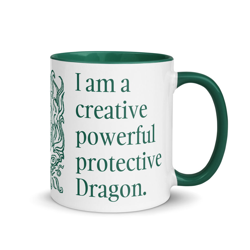 Add the spirit of the fierce dragon into your daily morning ritual and remind yourself how awesome you are while sipping your tea. Original Eunie Love Studio dragon stamp design on a cute 11 oz mug with a powerful affirmation.