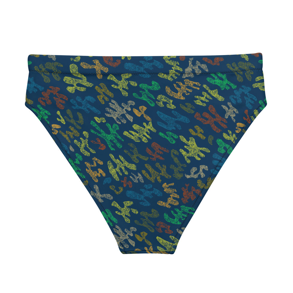 Stay comfortable this summer in this quirky Jiggy print high waist bikini bottom by Eunie Love Studio in Navy Multi colorway. It’s made from soft recycled polyester with double-layering and UPF 50+. Complete your bikini set with a padded bikini top and layer on a button shirt to serve as a coverup. Perfect for all your summer adventures whether lounging by the pool or hitting up the beach.