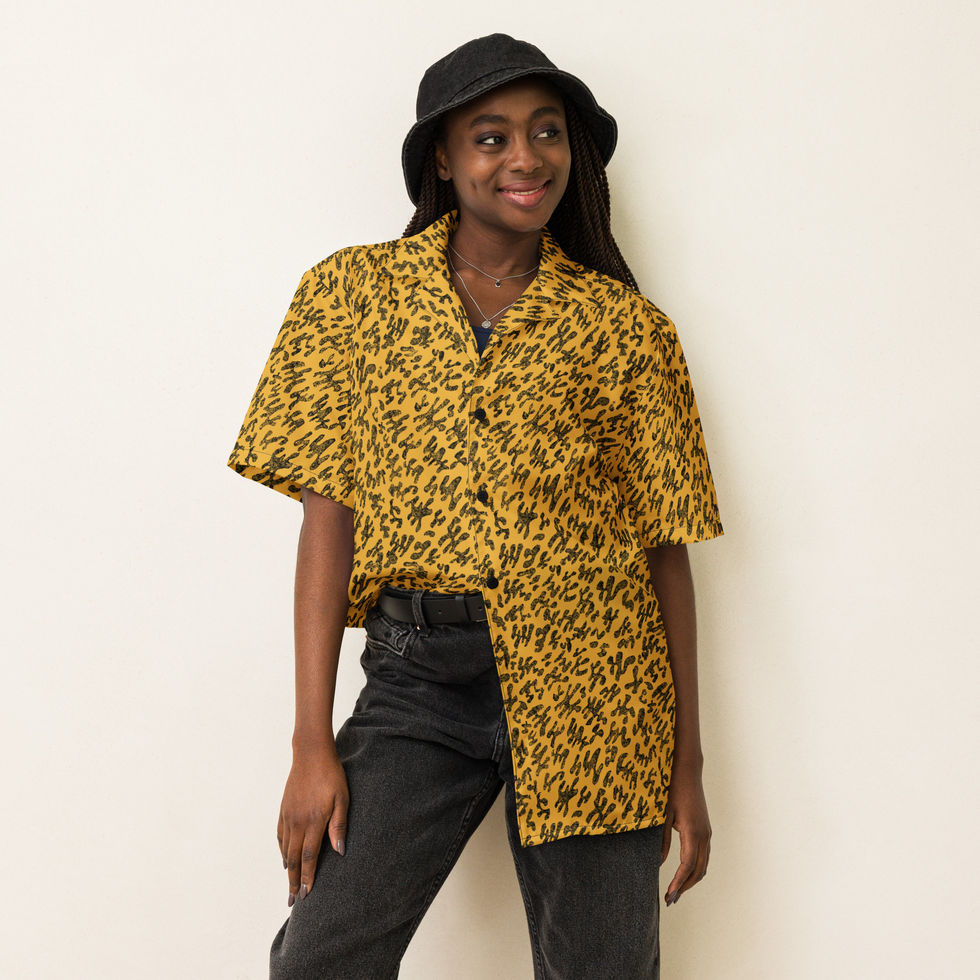 Add some quirk with this Jiggy print design by Eunie Love Studio in Cherry colorway. This short sleeve button shirt is made with light weight fabric with moisture-wicking properties perfect for poolside comfort and summer adventures. Wear it over a matching bathing suit for cool coverup.