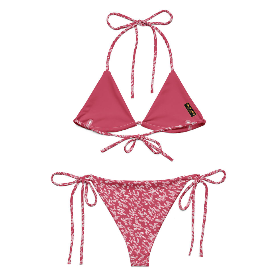 Make a statement in this quirky Jiggy print string bikini by Eunie Love Studio in Cherry colorway. It’s made from soft recycled polyester with double-layering and UPF 50+. Bikini top straps offers versatile styling options to suit your preference. Compliment and layer your look with a matching button shirt to serve as a coverup. Perfect for all your summer adventures whether lounging by the pool or hitting up the beach.