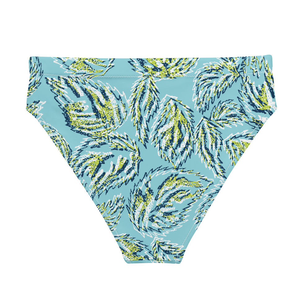 Leafy Tiki - High Waist Bikini Bottom - Aqua
