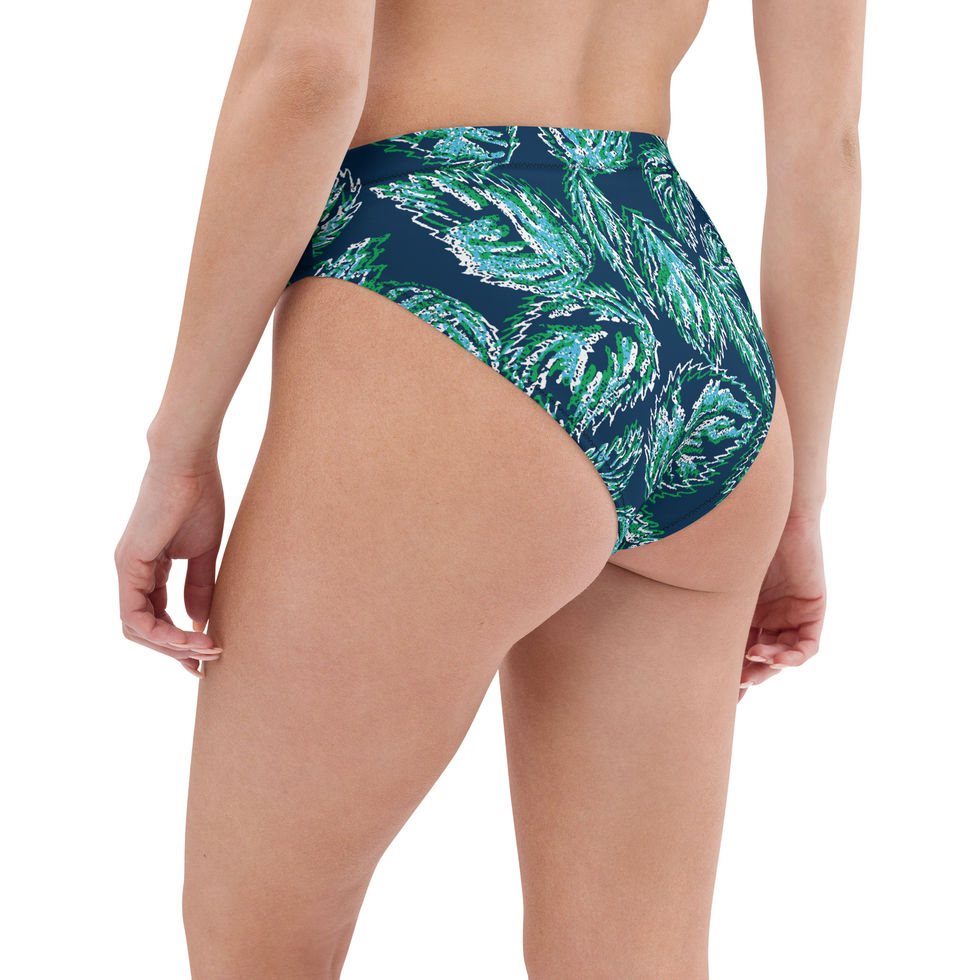 Leafy Tiki - High Waist Bikini Bottom - Navy