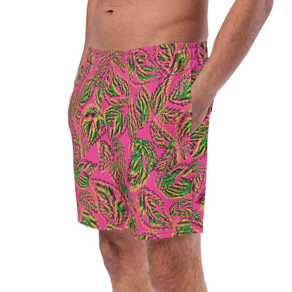 Dive into summer with the tropical Tiki Leafy print by Eunie Love Studio in Magenta. They have everything you need for a hot summer day—quick-drying and breathable fabric, multiple pockets for your belongings, and a silky, anti-chafe inner liner. Complete your look with a matching shirt for poolside vibes.
