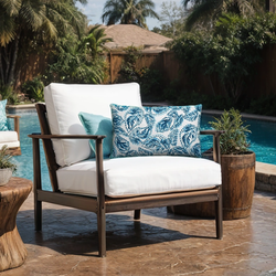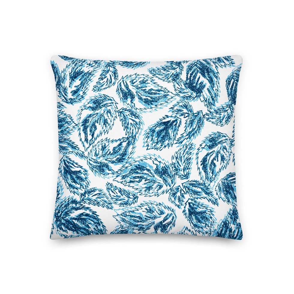 Add some tropical splash of color to your space with a throw pillow in Leafy Tiki print in White and blue. This premium feel pillow with a shape-retaining insert is just what you're looking for! It'll make any room pop and provide the perfect cushion to your favorite patio chair.